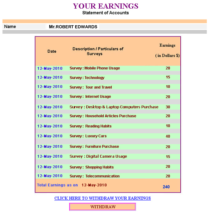 Please remember that the payment for the completed surveys will be made by the Survey Companies directly to the participants and not by worldofpaidsurvey.com